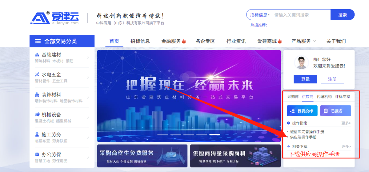 为提升用户体验,优化系统功能,济南一建集团阳光采购平台所有在线招投标业务全部委托中科爱建(山东)科技有限公司(简称:中科爱建)提供在线招投标服务。启用新平台爱建云(www.aijianyun.com)原济南一建集团阳光采购网站即日起停用。